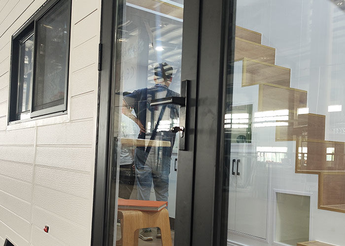 Bên ngoài được ốp bằng tấm ốp kim loại cách nhiệt màu trắng dày 16mm, mang lại cho Cider Box vẻ ngoài hiện đại và tối giản. Cấu trúc chính được làm từ thép nhẹ G550GD AZ150 có độ dày 0,75mm, đảm bảo độ bền và độ chính xác trong thi công. Tấm ốp kim loại cách nhiệt cũng cung cấp khả năng cách nhiệt tuyệt vời, nâng cao hiệu quả năng lượng của ngôi nhà.