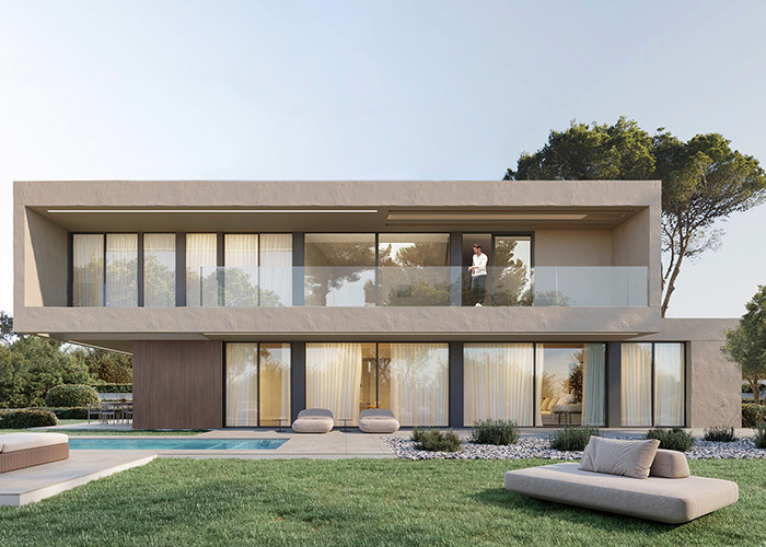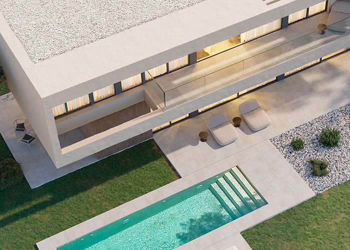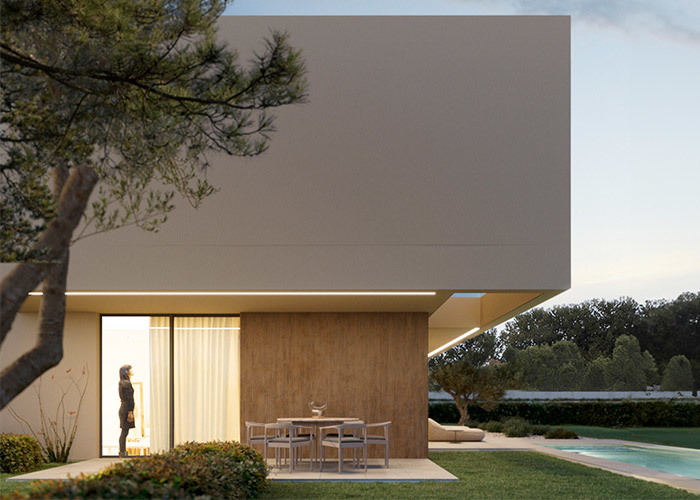 Ngôi nhà bao quanh một sân trong riêng tư, được che chắn, tạo thành một phần mở rộng tự nhiên của không gian sống, nơi bạn có thể thưởng thức cà phê buổi sáng hoặc các buổi tụ họp buổi tối dưới bầu trời quang đãng.