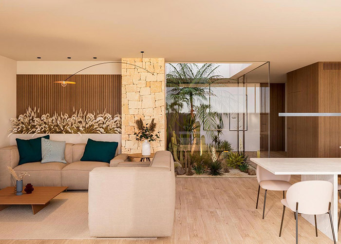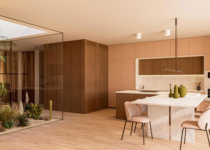 Lối vào là qua một khu vực sinh hoạt rộng rãi.một phòng ngủ với phòng tắm liền kề cung cấp chỗ ở thuận tiện phù hợp cho khách hoặc thành viên gia đình thích sống một tầngỞ bên phải, khu vực bếp và ăn uống được định vị như một không gian tích hợp cho việc sử dụng hàng ngày.